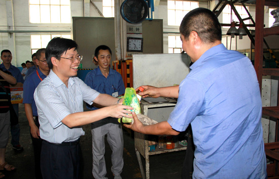 7月26日,新昌縣委書記樓建明一行在集團(tuán)黨委副書記徐志良、鋁輪事業(yè)部總經(jīng)理梁賽南等領(lǐng)導(dǎo)的陪同下,親切慰問高溫作業(yè) ...