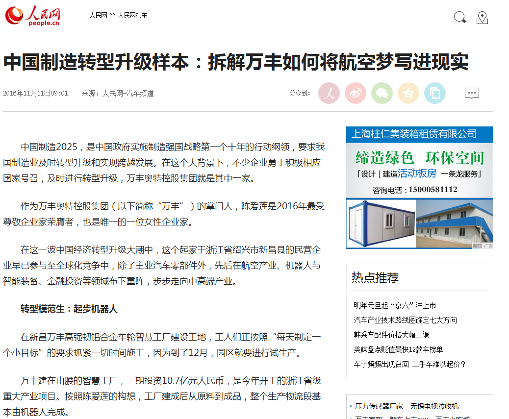 【人民網】中國制造轉型升級樣本:拆解萬豐如何將航空夢寫進現實