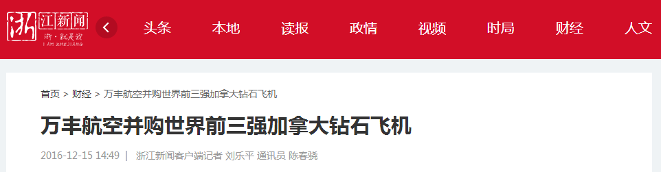 【浙江新聞】萬豐航空并購世界前三強加拿大鉆石飛機