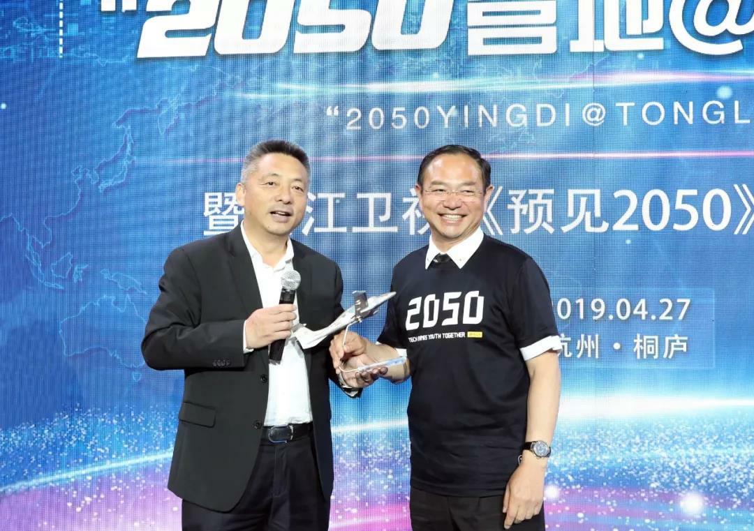 4月27日,第二屆2050大會重要活動之一,2050全球唯一永久營地開營暨浙江衛視《預見2050》第二現場揭幕儀式在桐廬舉行。杭州市市長徐立毅出席啟動儀式并宣布開營。杭州市副市長柯吉欣、浙江廣電集團總裁呂建楚、阿里巴巴集團技術委員會主席王堅、中國環球飛行第一人張博等參加活動。萬豐集團航空團隊受邀出席儀式。