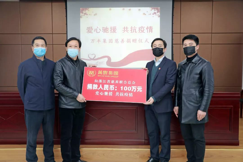 1月27日,萬豐集團向浙江省慈善聯合總會捐款100萬元,用于重點疫區的新型肺炎疫情防治。這是浙江省慈善聯合總會收到的第一家浙商企業的大額愛心捐贈。
