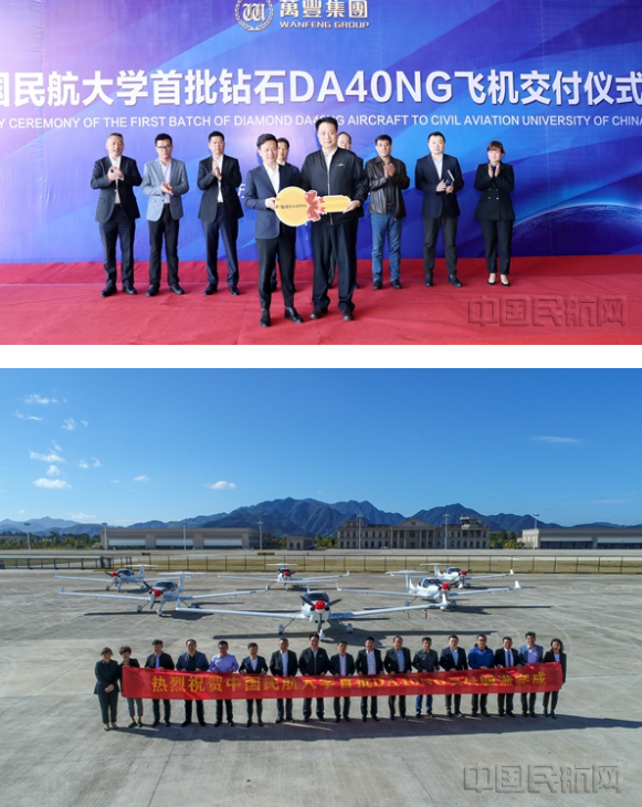 《中國民航報》、中國民航網 記者徐業剛 報道:11月18日,萬豐集團旗下萬豐飛機工業有限公司與中國民航大學舉行了首批鉆石DA40NG飛機交付儀式。此前雙方在9月簽署了24架鉆石DA40NG購機協議和戰略合作協議,約定將就飛機銷售、航材儲備、機型改進、售后維修等產、學、研多方面展開深度合作,共同助力我國通航產業蓬勃發展。
