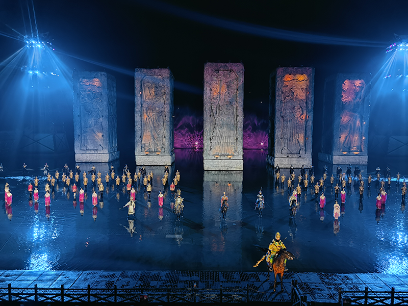 《烽煙三國》大型山水實景演藝是以萬里長江為背景、以三峽港灣為舞臺、以三國文化為主題、以忠義精神為靈魂,截取桃園結義、身陷曹營、火燒赤壁、水淹七軍等關羽忠義一生重要歷史場景,演繹了一場驚天動地的忠義壯舉,一幅金戈鐵馬的征戰畫卷,一部蕩氣回腸的英雄史詩。