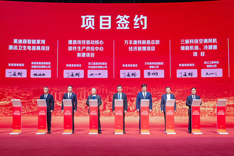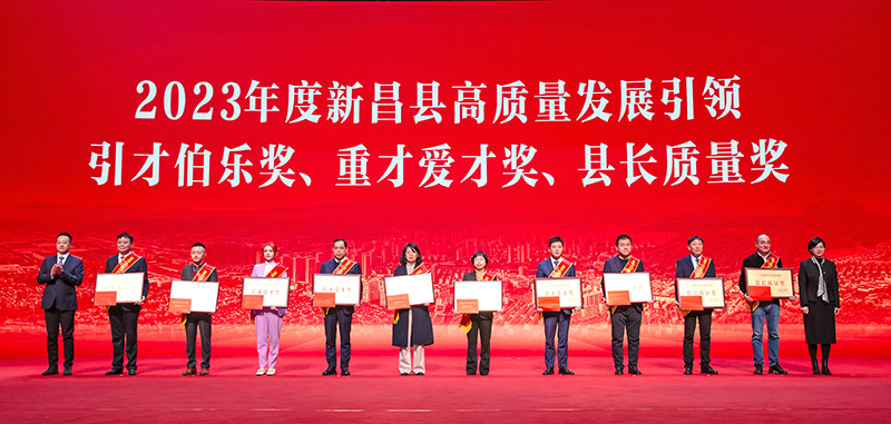 2月6日,新昌縣委經濟工作會議暨人才工作會議隆重召開,萬豐集團獲頒2023年度高質量發展引領銀獎和重才愛才獎,并簽約萬豐新昌總部經濟新增項目,萬豐集團董事長陳濱出席會議。