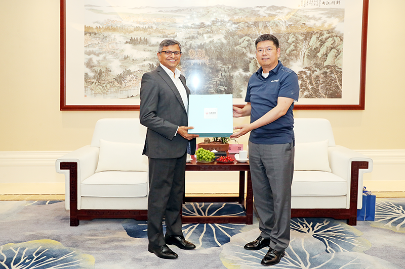 5月21日,印度英雄采購副總裁Ram Kuppuswamy一行到訪萬豐。萬豐集團董事長陳濱接見,雙方就進一步加強產業合作進行了座談交流。