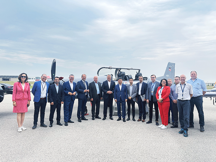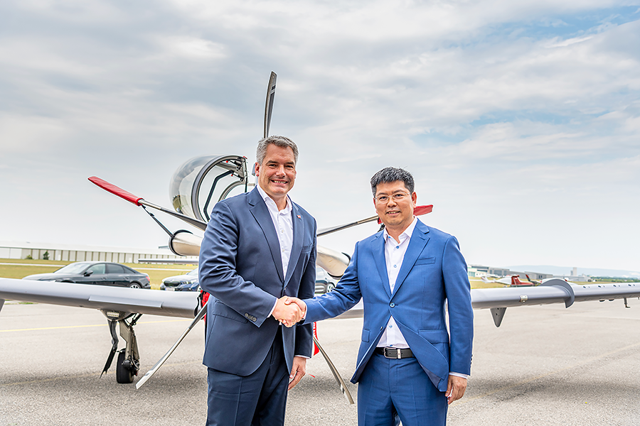 8月21日,奧地利共和國總理卡爾?內哈默(Karl Nehammer)訪問萬豐奧地利鉆石飛機公司,與萬豐集團總裁董事長陳濱進行了親切交流。