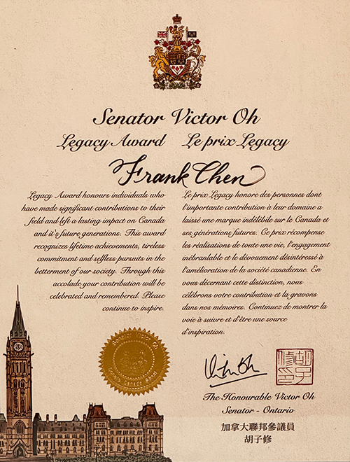 萬(wàn)豐集團(tuán)董事長(zhǎng)陳濱榮獲加拿大國(guó)會(huì)傳承獎(jiǎng)