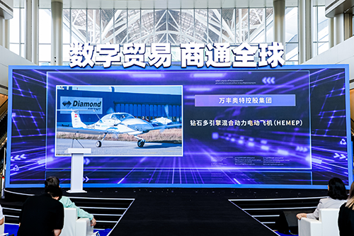 9月27日,第三屆全球數字貿易博覽會先鋒獎(DT獎)發布會在杭州大會展中心召開。萬豐鉆石HEMEP混合動力多引擎飛機獲評銀獎。