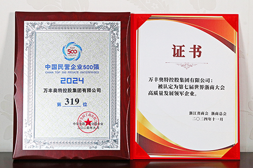 11月28日,第七屆世界浙商大會在浙江省人民大會堂隆重舉行,大會表彰了為浙江經濟社會發展作出突出貢獻的企業和個人,萬豐集團獲評“高質量發展領軍企業”典型樣本,并獲頒“中國民營企業500強”獎牌。中央統戰部副部長、全國工商聯黨組書記、常務副主席沈瑩,浙江省委書記、省長王浩致辭,萬豐集團董事局主席陳愛蓮出席大會并上臺領獎。