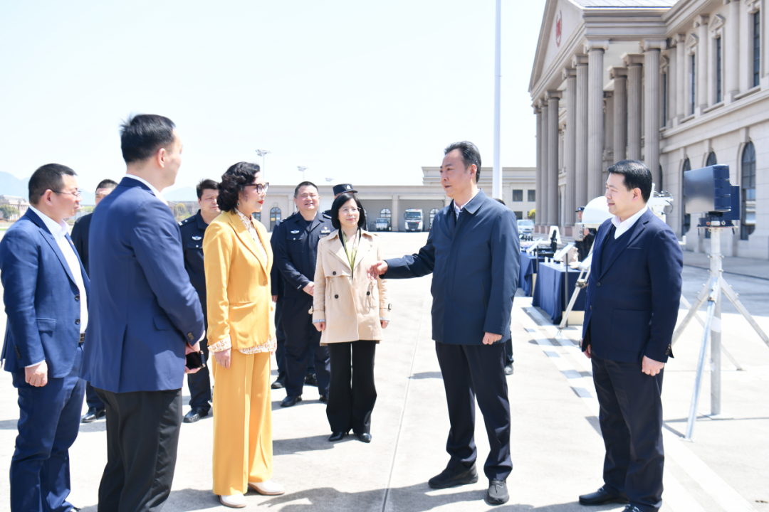 4月2日,浙江省副省長、省公安廳黨委書記、廳長楊青玖一行到訪萬豐集團調研共富警務護航低空經濟產業發展情況,并指導省廳警務航空隊駐訓工作。紹興市副市長、市公安局局長湯文全,新昌縣副縣長、縣公安局局長葉劍,萬豐集團董事局主席陳愛蓮等陪同調研。