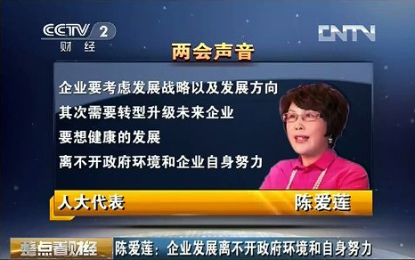 央視2套:“兩會聲音”播出陳愛蓮董事長采訪