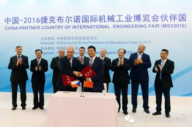 ? ? ? 捷克當(dāng)?shù)貢r(shí)間10月3日下午,萬豐奧特控股集團(tuán)與捷克共和國布爾諾科技大學(xué)的戰(zhàn)略合作簽約儀式在捷克布爾諾國際機(jī)械工業(yè)博覽會(huì)“中國館”舉行。