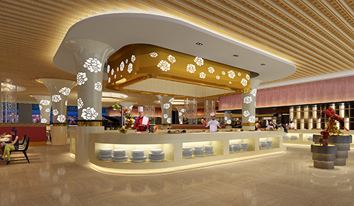 公司一樓為金鷹豹國際美食百匯,內設全開放式廚房,可容納280位賓客同時用餐,匯聚風味各異的國際美食,精選最好的食材、提供最優的環境、使用最新的料理,為滿足不同挑剔口味的各方饕餮。還有專業樂隊在周末節假日為您帶來美妙音樂,是生日PARTY等理想聚會場所。